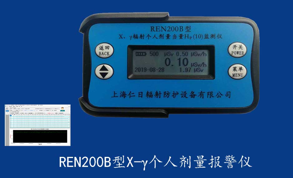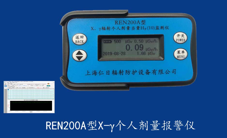 REN200型X、γ個人劑量報警儀(又叫X、γ輻射個人劑量當量HP(10)監(jiān)測儀)內置高靈敏度蓋格計數管為探測器,主要用來監(jiān)測各種放射性工作場所的X、γ以及硬β射線的輻射,具有響應快,測量范圍寬的特點。能顯示工作場所的劑量當量率和累積劑量,更換電池時,日期及累積數據能永久保存。可選配RenRiPersonal個人劑量管理軟件,該軟件可存儲多個人的歷史數據,能記錄日累積、月累積、年累積、輻照時長、計算平均劑量率、扣除或不扣除本底輻射,且以文字和圖譜的方式展現數據。廣泛應用于核電站、加速器、鋼鐵、化工、同位素應用、醫(yī)院、工業(yè)X、γ無損探傷、放射醫(yī)療、鈷源治療、γ輻照、放射性實驗室、核設施周圍環(huán)境監(jiān)測